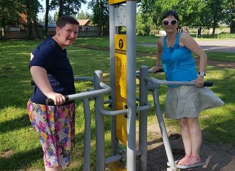 W piękną pogodę zajęcia z rehabilitacji ruchowej są przeprowadzane na pobliskiej siłowni dla mieszkańców 🙂 I wszyscy są zadowoleni!