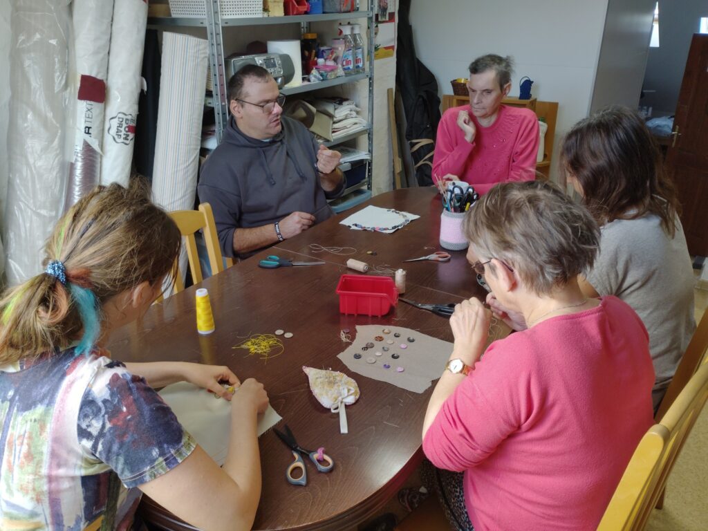 Podopieczni na pracowni gospodarstwa domowego uczą się nakrywania i dekorowania stołów oraz odpowiedniego zachowania się przy stole. Osoby niepełnosprawne intelektualnie doskonale radzą sobie z czynnościami związanymi z nakrywaniem do stołów: układają serwetki, przygotowują odpowiednią ilość zastawy do ilości uczestników siedzących przy jednym stole. Po zakończonej pracy na pracowni, wykonują czynności porządkowe związane z myciem i wyparzaniem naczyń, sprzątaniem swoich stanowisk pracy oraz całej pracowni.