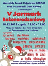 Serdecznie zapraszamy na V Jarmark Bożonarodzeniowy, ktory odbędzie się dnia 18.12.2015r. godz.12.00 – 17.00 na placu przy Kościele pw. Św. Jana Chrzciciela ul. Żeromskiego 39 w Trzciance.