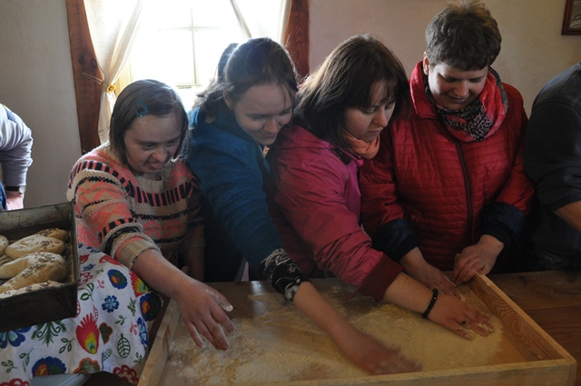 23 kwietnia w sobotę pojechaliśmy na wycieczkę do skansenu Stodoła Tradycji w Rychliku, gdzie braliśmy udział w warsztatach pieczenia chleba. Na początku obejrzeliśmy dawne sprzęty rolnicze, które eksponowane były na zewnątrz. Następnie przeszliśmy do izby, w której były przygotowane stolnice, a na nich wykonaliśmy autorskie chlebki. Gotowe wypieki otrzymaliśmy w formie prezentu i zabraliśmy do domu. W międzyczasie mieliśmy możliwość spróbowania chleba z masłem i smalcem, oraz podpłomyczków pieczonych na zewnątrz. Koniec pobytu w skansenie uwieńczyliśmy ogniskiem na którym piekliśmy kiełbaski. Właścicielem skansenu w Rychliku jest pan Ryszard Szymczak, któremu serdecznie dziękujemy za gościnę i miłą atmosferę.
