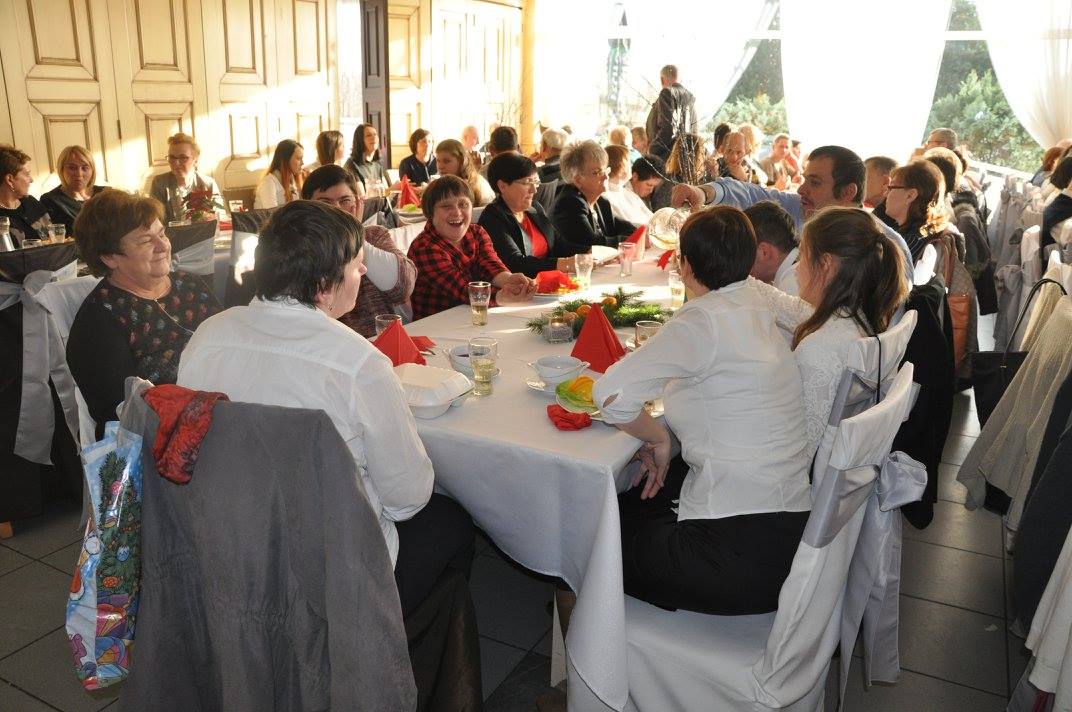 W dniu wczorajszym uczestnicy Warsztatów Terapii Zajęciowej "Caritas" w Trzciance oraz filia w Wieleniu wraz z rodzicami uczestniczyli w uroczystej Wigilii organizowanej w Złotej Kaczce. Podczas tak ważnego dnia razem z nami był starosta – Tadeusz Teterus, pani burmistrz miasta Wieleń – Elżbieta Rybarczyk, sekretarz gminy Trzcianka – Grażyna Kasperczak, zastępca wójta gminy Czarnków – Monika Piotrowska oraz ksiądz proboszcz Wawrzyniec Skraba i ksiądz Marian Mordarski. Wszyscy mieli przyjemność obejrzeć Jasełka oraz wysłuchać kolędy w wykonaniu WTZ Wieleń. Podzieliliśmy się opłatkiem oraz składaliśmy sobie najszczersze życzenia. Po przepysznym posiłku uczestnicy otrzymali paczki od Gwiazdora. Miła rodzinna atmosfera towarzyszyłam nam do samego końca. Bardzo dziękujemy wszystkim za udział i już życzymy zdrowych, wesołych Świąt Bożego Narodzenia!